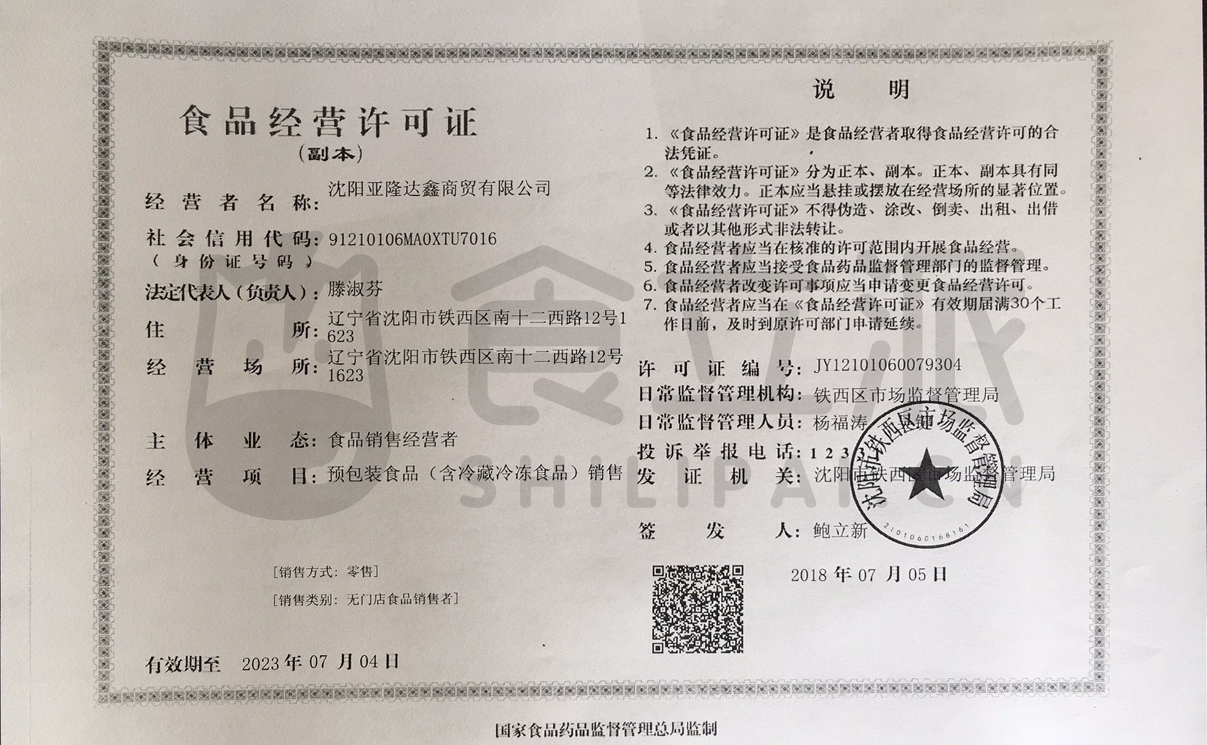 食立派商城平台所销售的产品由沈阳亚隆达商贸有限公司提供。