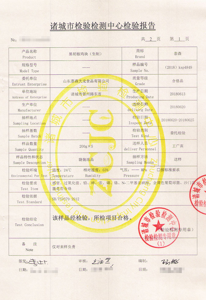 产品质检报告(内检以及外检):每个批次产品食品工厂按规程会进行内部质检化验,并留样备查,一旦发生食品安全问题,客户可与工厂通报,并调用产品内检报告和留样,避免发生大规模食品安全事故。